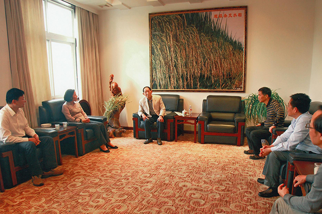 聞名遐邇的隆平高科股份有限公司是由湖南省農(nóng)業(yè)科學(xué)院、湖南雜交水稻研究中心、袁隆平院士等發(fā)起設(shè)立、以科研單位為依托的農(nóng)業(yè)高科技股份有限公司,公司成立于1999年6月,是一家以光大袁隆平偉大事業(yè),用科技改造農(nóng)業(yè),造福世界人民的農(nóng)業(yè)高新技術(shù)企業(yè),2000年5月發(fā)行A股,2004年12月,長沙新大新集團(tuán)有限公司受讓湖南省農(nóng)業(yè)科學(xué)院的全部國有股權(quán)成為公司控股股東,2006年完成股權(quán)分置改革,成為完全市場化運作的現(xiàn)代上市公司??疾靾F(tuán)一行實地參觀了隆平公司高科技育苗實驗室、長沙生物技術(shù)實驗室、國家雜交水稻工程技術(shù)研究中心、隆平事跡成列館等,并和受到世人尊崇矚目的雜交水稻之父袁隆平院士溝通交流并合影留念。袁隆平院士接受了超級稻畝產(chǎn)1000公斤試驗新近成功的祝賀,并表示下一步工作計劃就是超級稻第五項目向畝產(chǎn)1100公斤沖刺。大家衷心祝賀袁院士馬到成功,為人類做出新的偉大貢獻(xiàn)!
