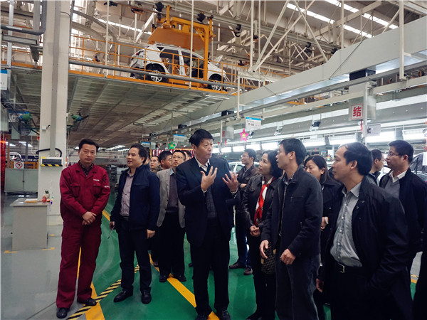 11月19日下午,在唐理斌副局長(zhǎng)等陪同下,考察團(tuán)一行來(lái)到江淮汽車(chē)股份有限公司考察調(diào)研。江淮汽車(chē)黨委副書(shū)記、紀(jì)委書(shū)記王東生熱情接待了考察團(tuán),陪同實(shí)地參觀江淮汽車(chē)發(fā)動(dòng)機(jī)生產(chǎn)線以及全自動(dòng)總裝生產(chǎn)車(chē)間,細(xì)致講解核心產(chǎn)品生產(chǎn)線的具體運(yùn)作。在隨后的座談中,王東生書(shū)記介紹了公司的發(fā)展歷程及歷史沿革??疾靾F(tuán)還就企業(yè)混合所有制改革等議題進(jìn)行了深入的探討,相互借鑒、互取所長(zhǎng)。