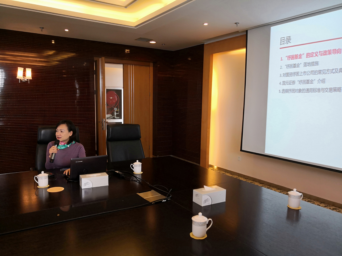 隨后,劉錦鋒副主任委員對(duì)國(guó)資紓困上市公司的常見(jiàn)方式及典型案例進(jìn)行剖析,并就國(guó)元證券“紓困基金”運(yùn)作紓困對(duì)象的選擇等進(jìn)行分享。