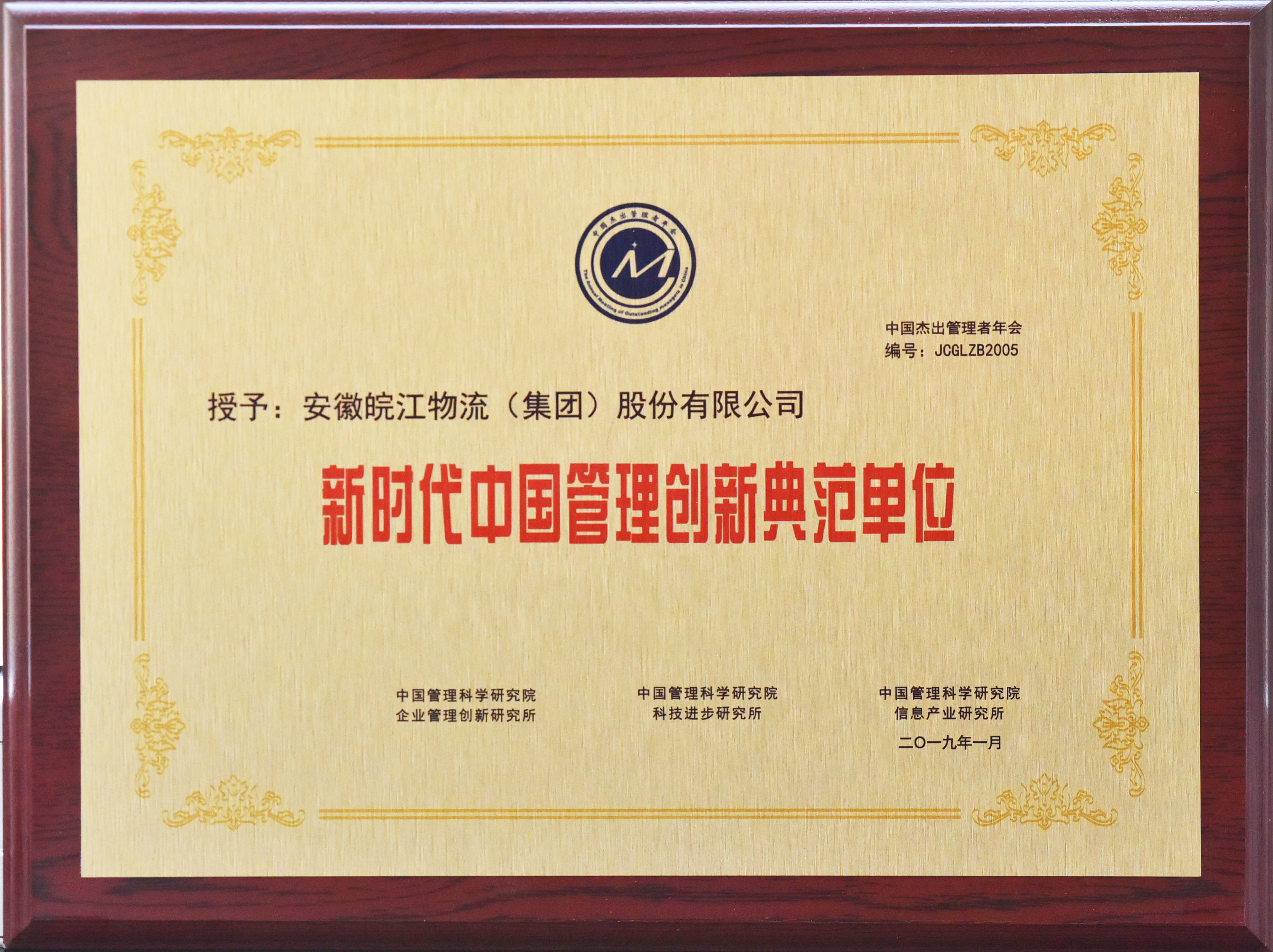 皖江物流獲得新時(shí)代中國(guó)管理創(chuàng)新典范單位榮譽(yù)稱號(hào)