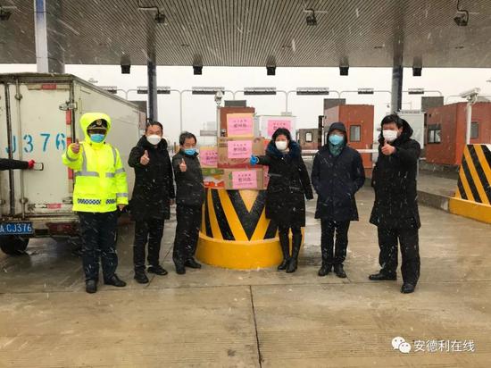 2020年2月15日下午,巢湖市商務局黨組成員、副局長王健康,安德利百貨副總經(jīng)理劉章宏一行,向巢湖市域公路市界六個疫情防控卡點(安巢經(jīng)開區(qū)(蕪合高速巢湖入口處)、烔煬鎮(zhèn)(烔煬鎮(zhèn)與肥東縣交界處)、銀屏鎮(zhèn)(銀屏鎮(zhèn)與無為界交界處)、亞父街道(亞父與含山縣交界處)、半湯街道(半湯街道與含山縣交界處)、槐林鎮(zhèn)(槐林兆河大橋))的一線“戰(zhàn)士們”送去面包、餅干、牛奶、奶茶等慰問品,感謝他們堅守一線,頂著風雪和風險為一方百姓安全所做出的努力。