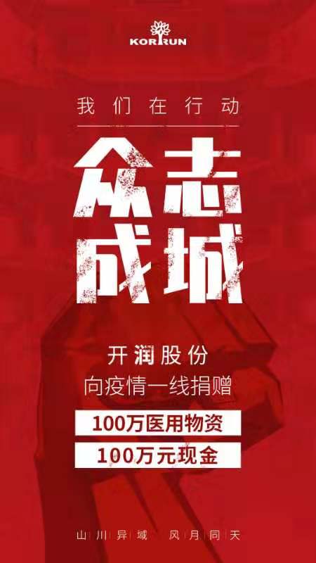開潤股份向疫情一線捐贈100萬醫(yī)用物資100萬元現(xiàn)金