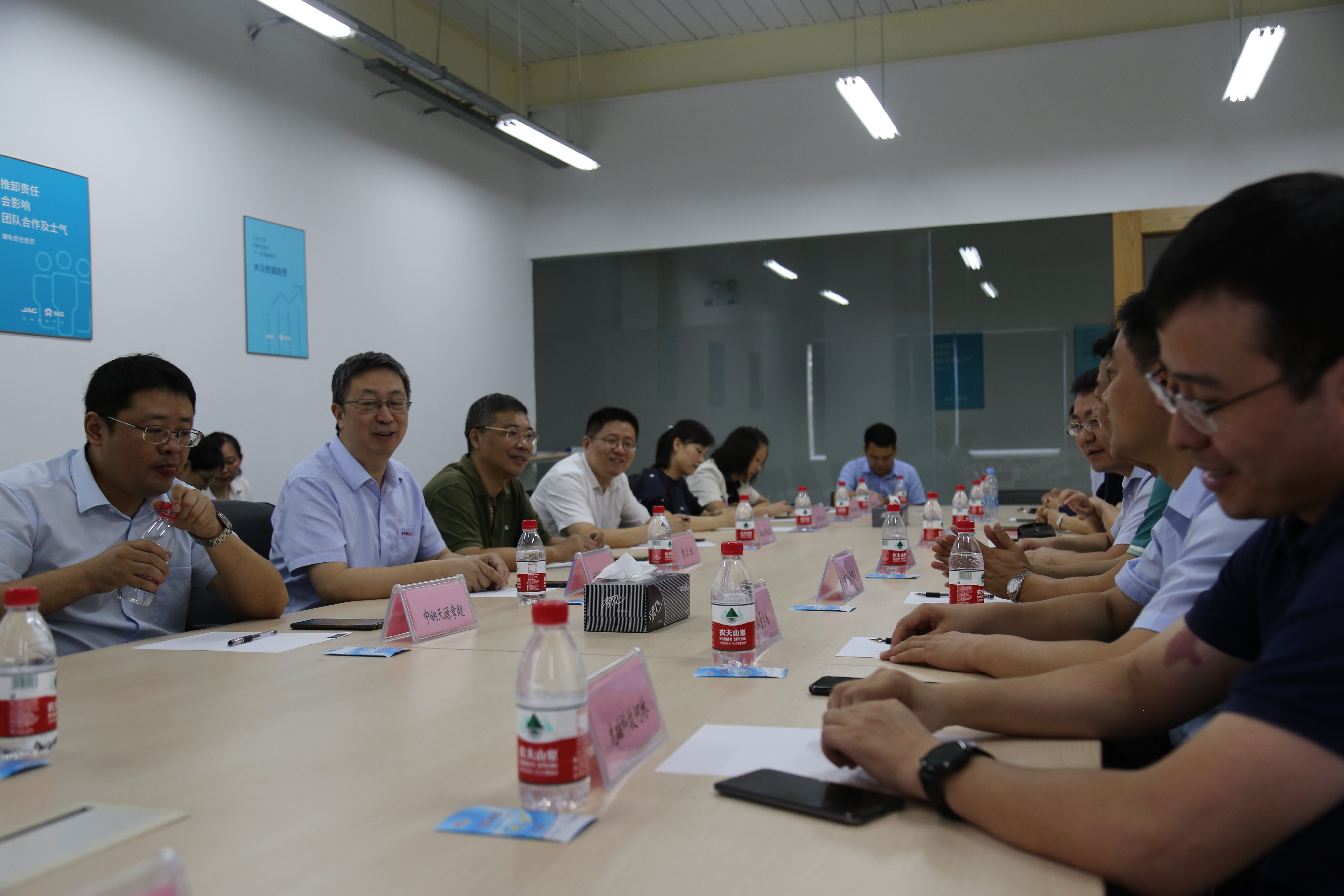 會后,與會人員參觀江淮蔚來工廠。江淮汽車董秘馮良森詳細(xì)闡述了江淮與蔚來合作的戰(zhàn)略布局、新能源汽車的發(fā)展?fàn)顩r,以及蔚來汽車的性能優(yōu)勢等。在工作人員帶領(lǐng)下,大家現(xiàn)場近距離觀看蔚來汽車的機(jī)器人全覆蓋自動化生產(chǎn)線。該工廠通過工業(yè)互聯(lián)網(wǎng)、大數(shù)據(jù)、云計算等技術(shù)實現(xiàn)了自動排產(chǎn)、自動能源管理、自動質(zhì)量檢測,滿足客戶定制化生產(chǎn)等多種需要,正成為“安徽智能制造樣板工廠”。