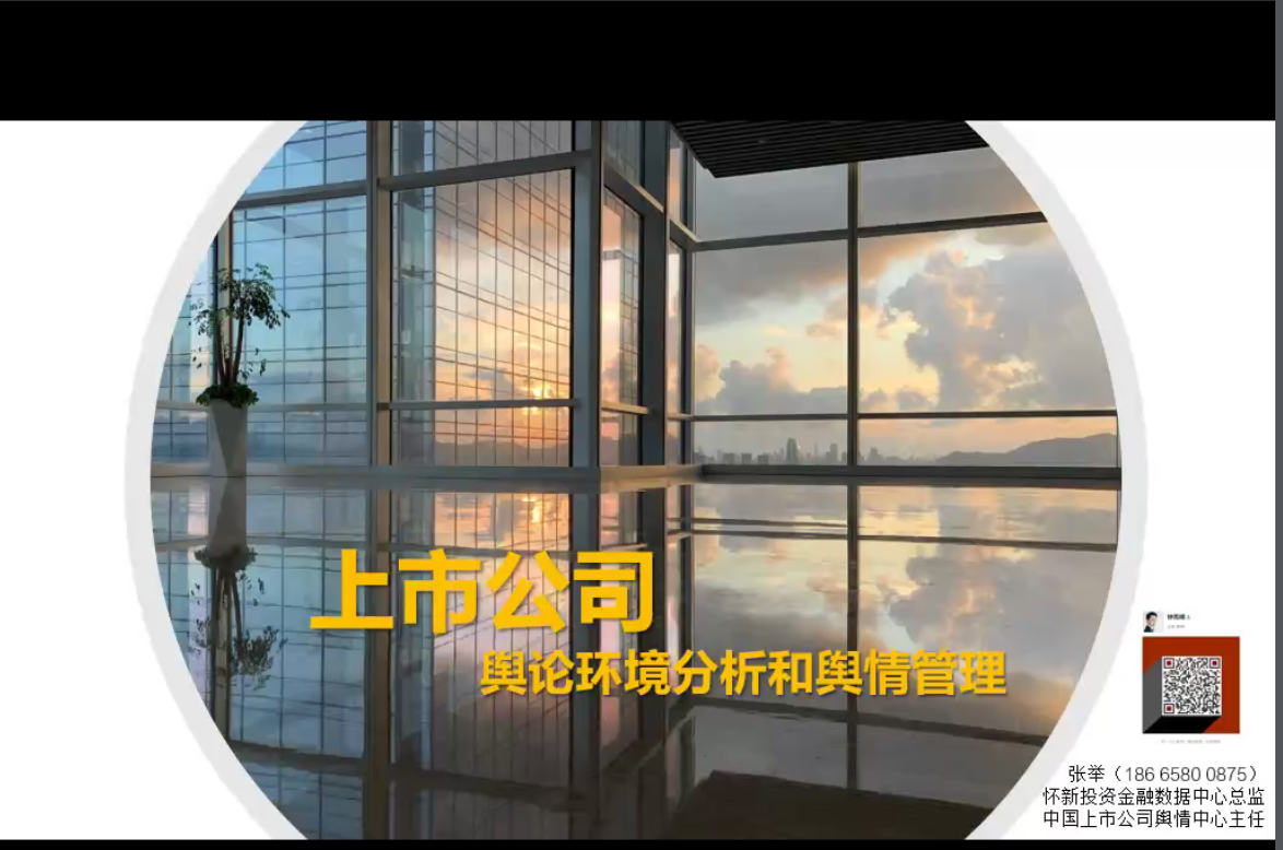 本次講座特邀中國上市公司輿情中心主任、懷新投資金融數(shù)據(jù)中心總監(jiān)張舉老師,從信息時代媒體輿論環(huán)境分析、上市公司常見輿情風(fēng)險梳理、主動傳播和危機公關(guān)的雷區(qū)、企業(yè)價值觀與社會參與姿態(tài)、常態(tài)化媒體關(guān)系和輿情管理五個方面梳理和介紹輿情環(huán)境和輿情管理,并對實際案例作了深入的剖析和理論解讀,最后也給出了輿情預(yù)警、輿情防范和輿情應(yīng)對的心得和建議。