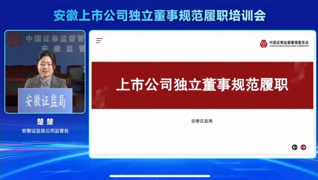 為進(jìn)一步促進(jìn)轄區(qū)獨(dú)立董事規(guī)范履職行為、提升履職能力,充分發(fā)揮獨(dú)立董事在公司治理中的作用,提高轄區(qū)上市公司規(guī)范運(yùn)作和公司治理水平,我會于2024年3月1日成功舉辦安徽上市公司獨(dú)立董事規(guī)范履職線上培訓(xùn)會。轄區(qū)176家上市公司500余名獨(dú)董及相關(guān)人員參會。